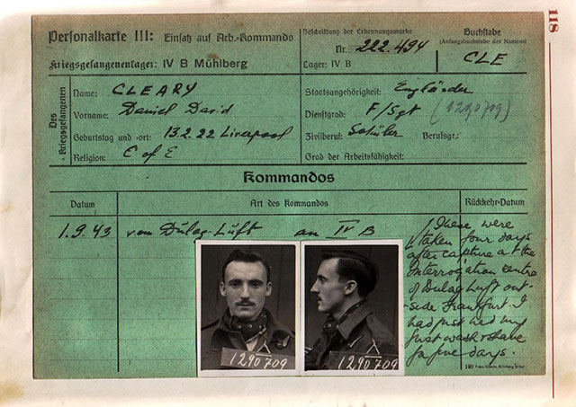 “these were taken 4 days after capture at the Interrogation Centre of Dulag Luft outside Frankfurt. I had just had my first wash and shave for five days.”